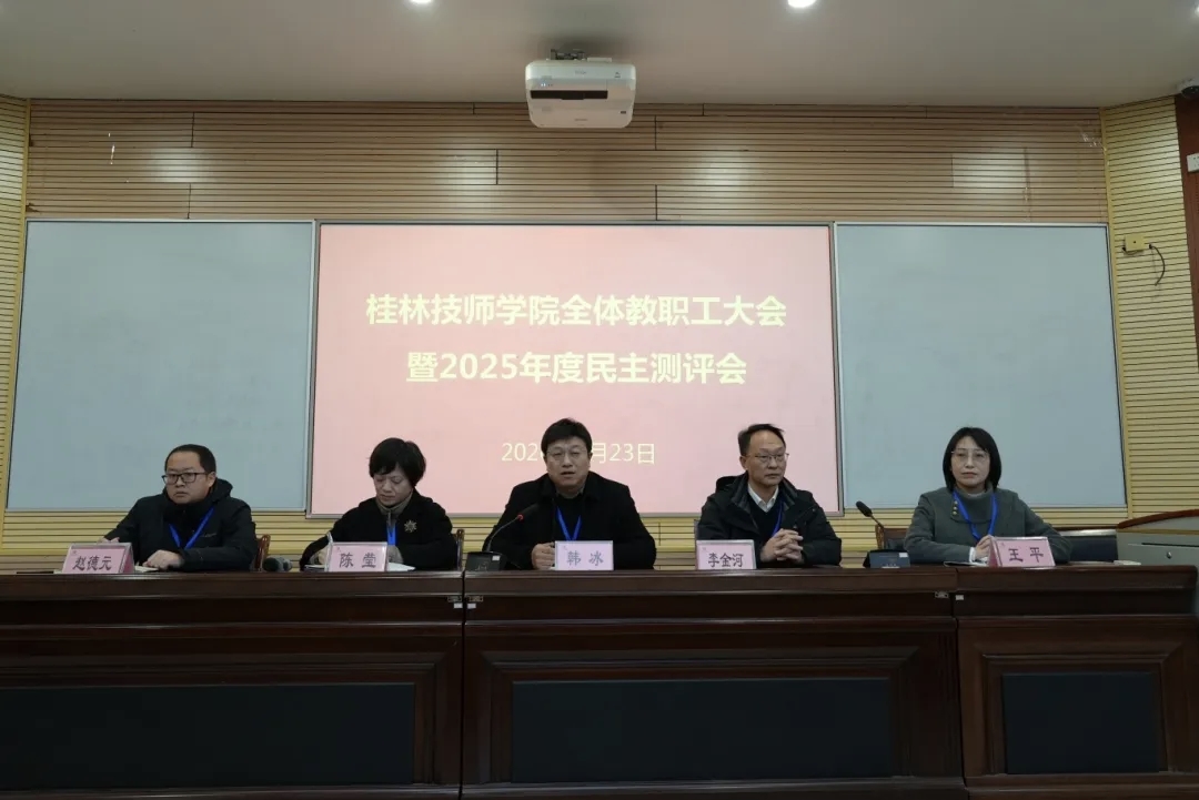 韩冰代表学院党委及领导班子向全体教职工一年来的辛勤付出表示感谢,并从四个方面总结部署学院工作:一是肯定年度成绩,表扬先进,强调要持续聚焦立德树人,巩固工作成果;二是要深入贯彻上级精神,对接地方产业需求,优化专业设置、深化融合改革,不断提升育人质量与学院品牌影响力,主动服务桂林发展大局;三是重视12345政务热线等渠道反映的问题,切实做好整改与反馈,加强政策宣传,营造良好育人环境;四是对寒假工作提出希望,提醒全体教职工牢记安全第一、严守纪律、廉洁自律,合理安排休息与学习,陪伴家人、谋划未来,同时要求值班人员认真履职,确保校园平安稳定。韩冰表示,新的一年,学院党委将持续强化党建引领,推动党建与业务深度融合,携手全体教职工共同谱写学院发展新篇章。