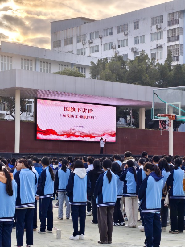 12月1日“世界艾滋病日”当天,学院组织开展了以《知艾防艾、健康同行》为主题的国旗下讲话。讲话面向全体师生,进一步强调了艾滋病防治的重要性,倡导科学防护、消除歧视,呼吁共同营造关爱健康、反对歧视的良好校园与社会环境。