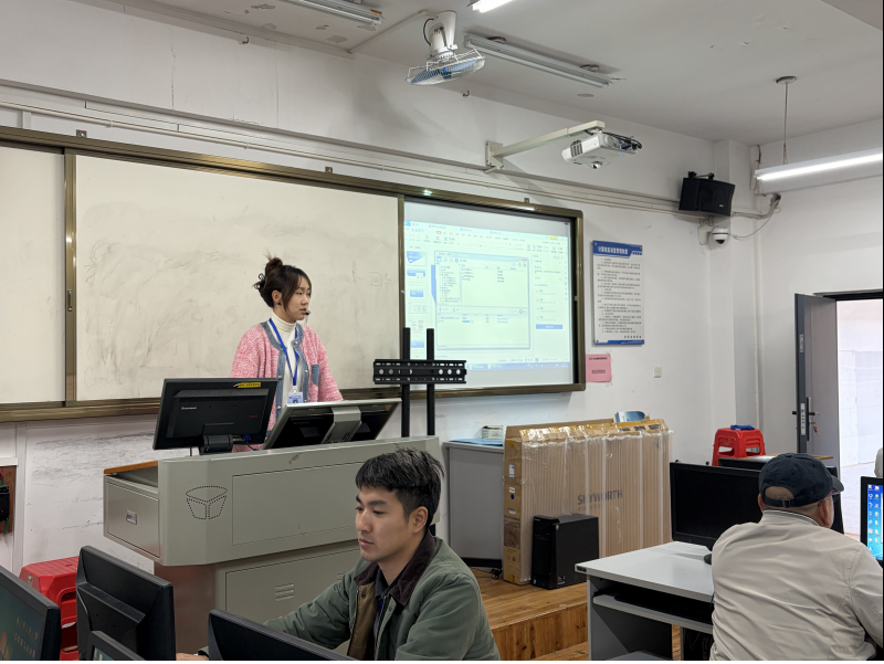 “AI视频制作”与“信息化软件办公教学”专题成为全场焦点。公共基础部主任何叶现场演示AI工具在教学设计、学情分析、资源生成中的高效应用。信息工程系教学副主任宋泓颖,指导教师亲手操作智能备课平台与虚拟仿真实验系统,亲身体验技术如何为课堂提质增效。参训教师感叹:“AI不再是概念,它正成为我们触手可及的教学伙伴!”