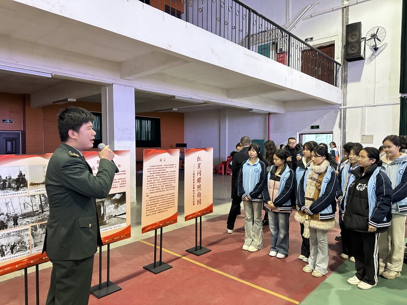 长期以来,学院始终坚持以红色文化铸魂育人,将“桂林红”融入教育教学全过程、校园文化各维度。学院不仅把八路军桂林办事处、湘江战役等本地红色资源纳入特色课程体系,开发《桂林红色精神读本》校本教材,还常态化组织学生赴红色教育基地开展研学实践,依托红色文化宣讲社团培育青年宣讲骨干,让红色基因成为技能人才成长的“精神密码”。本次“红星闪耀照南国”主题图片展活动,正是学院红色教育实践的生动延伸——通过沉浸式展览、专业讲解与互动体验,让师生在重温抗战历史中感悟先辈初心,在传承红色精神中增强使命担当。