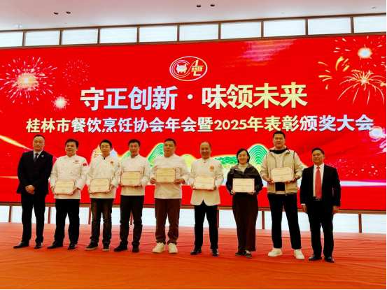 1月15日,桂林市餐饮烹饪协会年会暨2025年工作表彰颁奖大会在榕湖饭店举行。学院受邀参会,同时当选协会副会长单位并荣获“桂林餐饮行业地方饮食文化传承创新奖”,中式烹调专业学科带头人阳海花老师荣获“2025年度桂林市烹饪人才培育贡献奖”,彰显了学院专业建设与人才发展的双重成效。